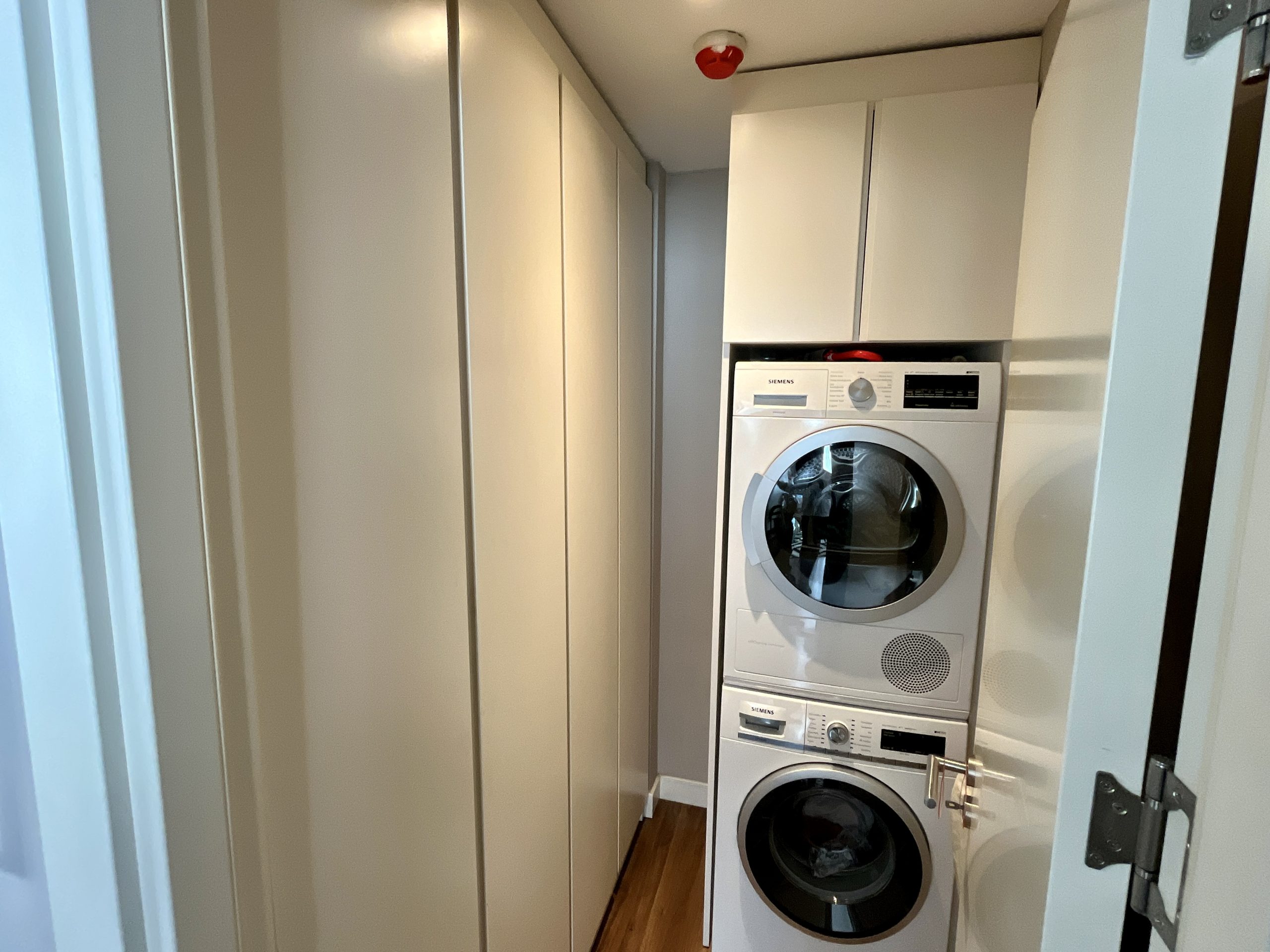 Ayrıca daire içerisinde yer alan çamaşır odası için özel olarak yaptırılmış dolap sayesinde düzenli ve pratik bir kullanım alanı sunulmaktadır.